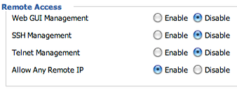 I want to prevent anybody from reaching the DD-WRT web gui from the outside world. So I presume I want to disable all remote access. I see there is a list of checkboxes for each service. But at the end of the list, there is this confusing parameter "Allow Any Remote IP".