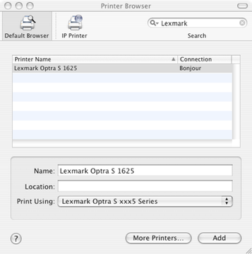 The string “Lexmark Optra S 1625” is the human readable name that you will see in a browser. When you go to System Preferences and try to add a new printer, that’s the name you will see in the list of Bonjour discovered printers.